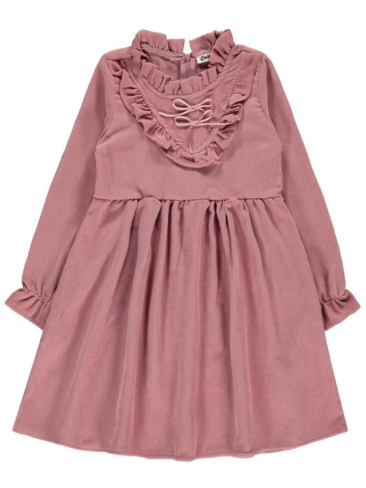 Civil girls yaka fırfırlı 10-13 yaş elbise - pudra
