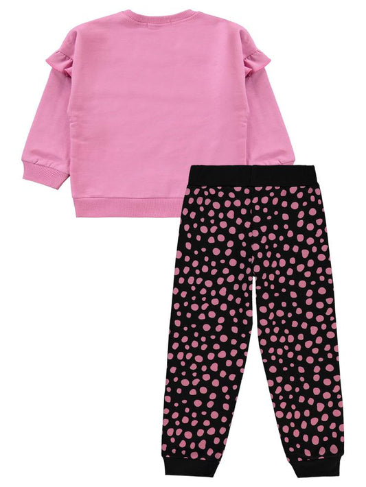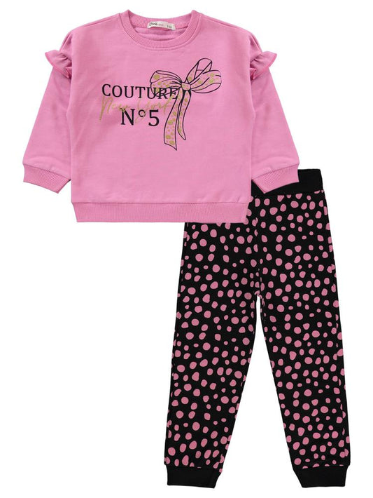 Civil girls simli fiyonk baskılı 2-5 yaş eşofman takımı - pembe