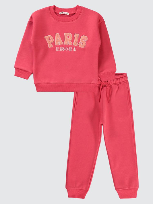 Civil girls paris nakışlı 2-5 yaş eşofman takımı - kırmızı