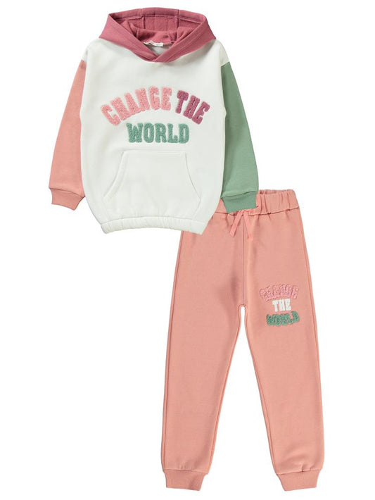 Civil girls change the world nakışlı 6-9 yaş eşofman takımı - ekru
