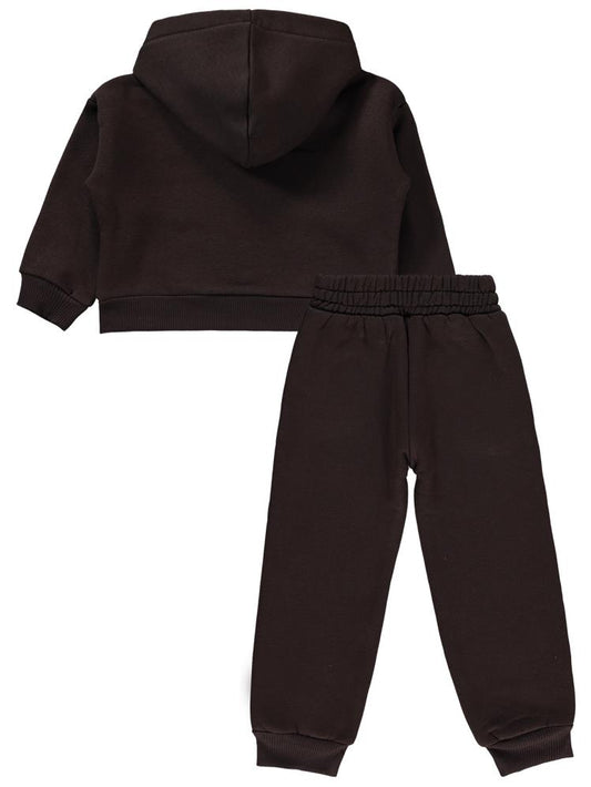 Civil girls california baskılı 2-5 yaş eşofman takımı - kahverengi