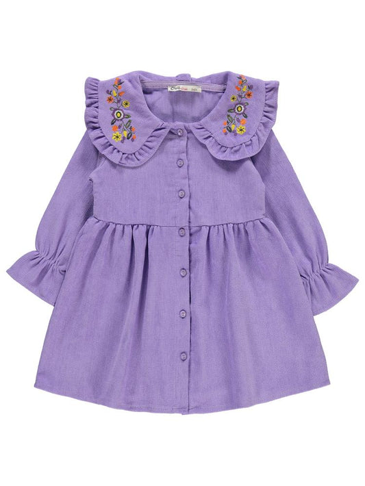 Civil girls yaka nakışlı 2-5 yaş elbise - lila