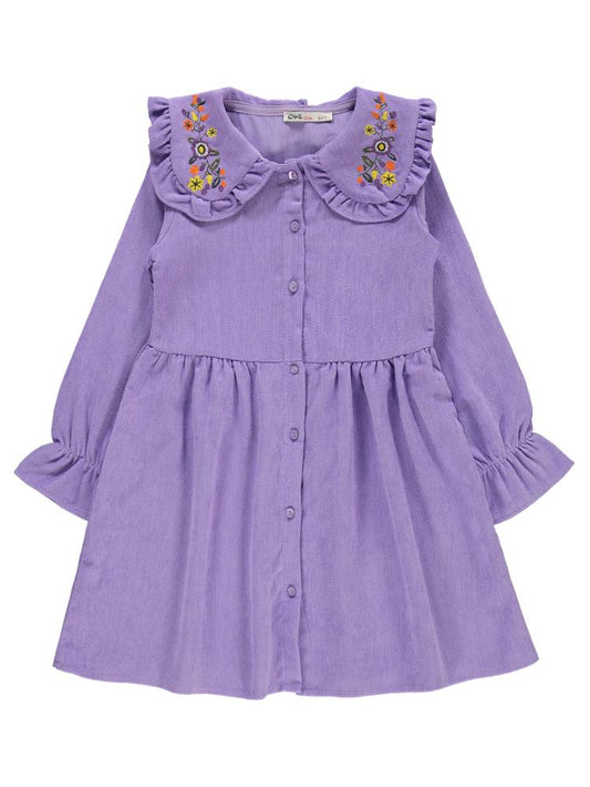 Civil girls yaka nakışlı 6-9 yaş elbise - lila