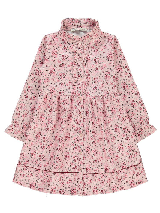 Civil girls çıtı çiçek desen 6-9 yaş elbise - pudra