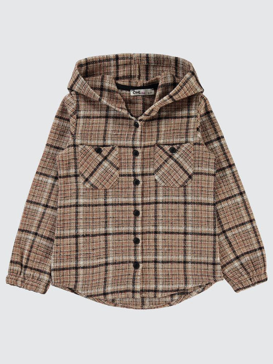 Civil girls yakalı çift cepli 6-9 yaş gömlek - kahve