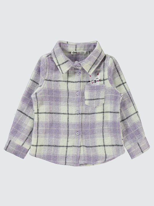 Civil girls kedi nakışlı 2-5 yaş gömlek - lila