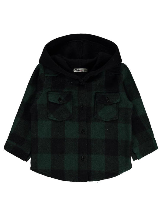 Civil boys çzigili çift cepli kapşonlu 10-13 yaş gömlek - haki