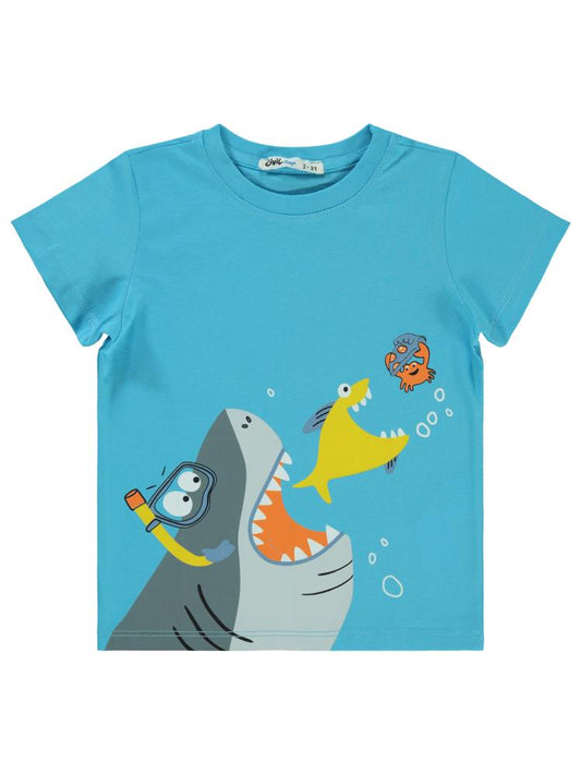 Civil boys köpek balığı baskılı 2-5 yaş tişört - mavi