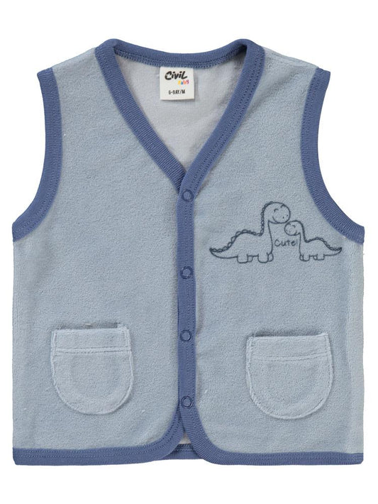 Civil baby dinozor baskılı cepli 6-18 ay yelek - mavi