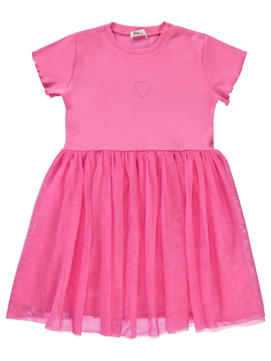 Civil girls kalp baskılı tüllü 6-9 yaş elbise - fusya