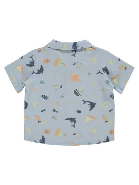 Civil boys ahtapot yelkenli baskılı 2-5 yaş gömlek - mavi