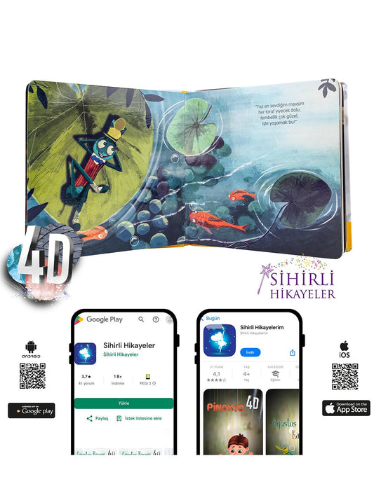 Sihirli hikayeler kitap serisi, uzman pedagog rehberliğinde hazırlanmıştır. 4D teknolojisi sayesinde, çocuklarımız, anlatılandan daha fazlasını çeşitli animasyonlar ile hem görecekler...