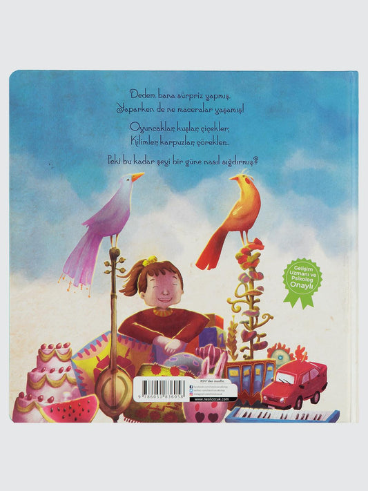 Dedem bana sürpriz yapmış.Yaparken de ne maceralar yaşamış!Oyuncaklar, kuşlar, çiçekler, kilimler, karpuzlar, çörekler…Peki bu kadar şeyi bir güne nasıl sığdırmış? “Tatlı...