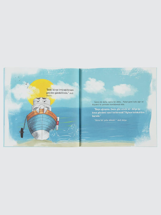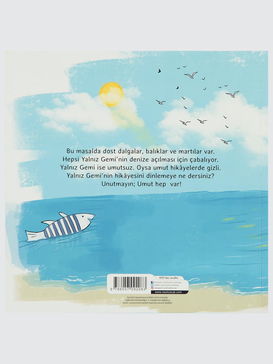 Bu masalda dost dalgalar, balıklar ve martılar var.Hepsi Yalnız Gemi`nin denize açılması için çabalıyor.Yalnız Gemi ise umutsuz. Oysa umut hikâyelerde...