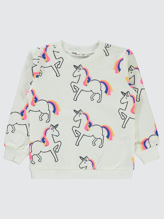 Civil girls renkli unicorn empirme 2-5 yaş sweatshirt - ekru