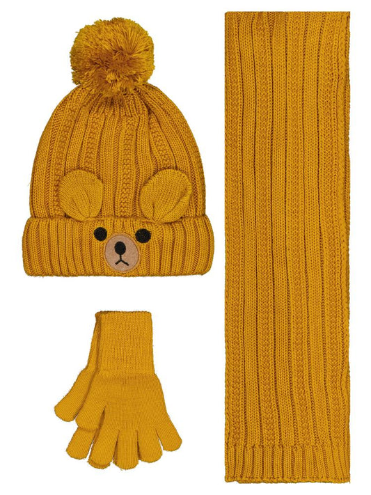 Civil boys 2-5 yaş atkı bere eldiven set - hardal