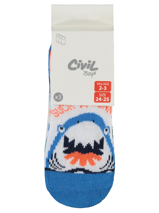 Civil boys shark 3'lü 2-12 yaş erkek babet çorap