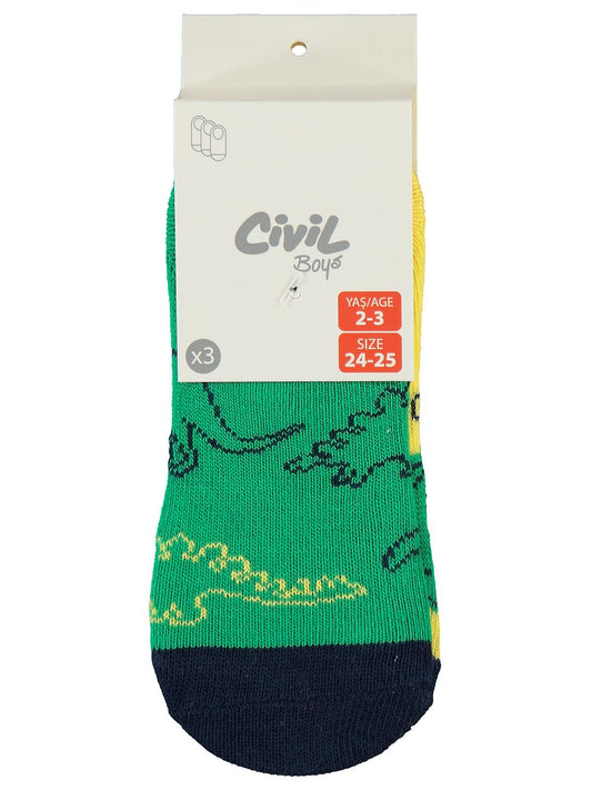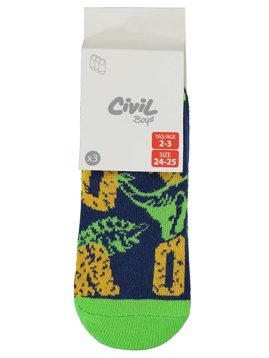Civil boys dinazor 3'lü 2-12 yaş erkek babet çorap
