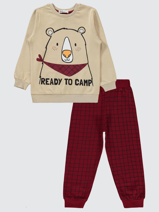 Civil boys ready to camp baskılı 2-5 yaş eşofman takımı - bordo