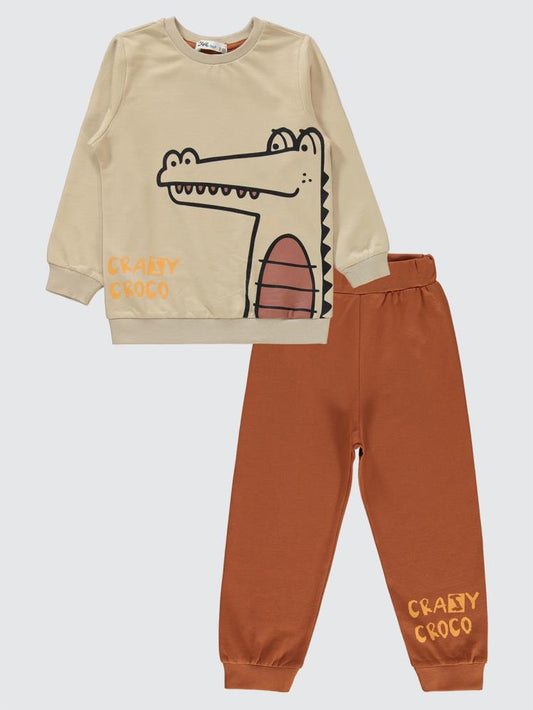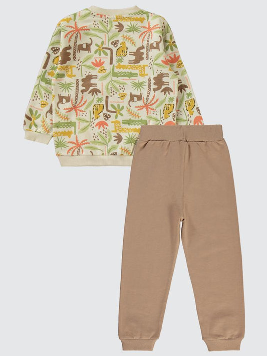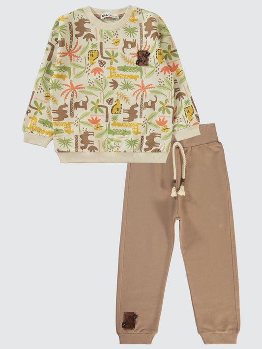Civil boys deve baskılı 2-5 yaş eşofman takımı - kahverengi