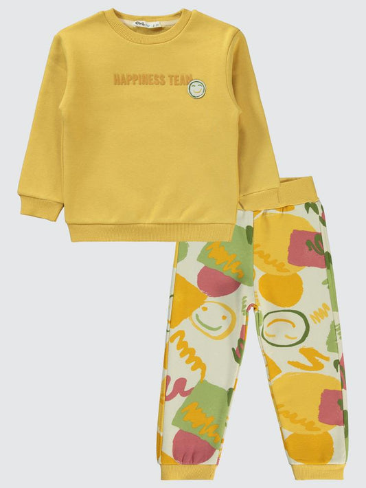 Civil boys happiness baskılı 2-5 yaş eşofman takımı - hardal