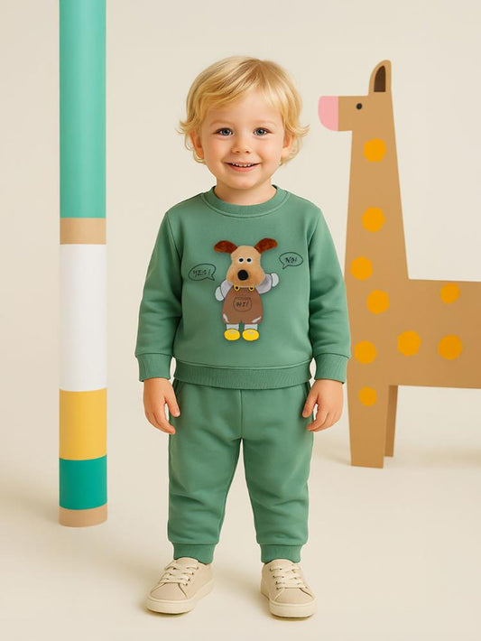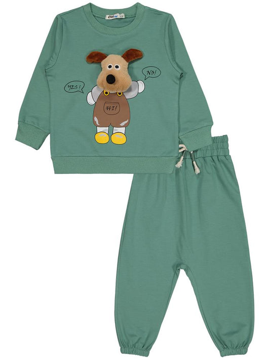 Civil boys dinozor nakışlı 2-5 yaş eşofman takımı - yeşil