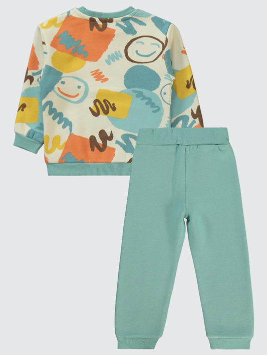 Civil boys gülen surat baskılı 2-5 yaş eşofman takımı - yeşil