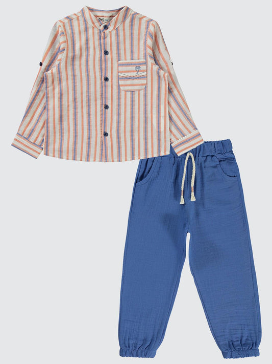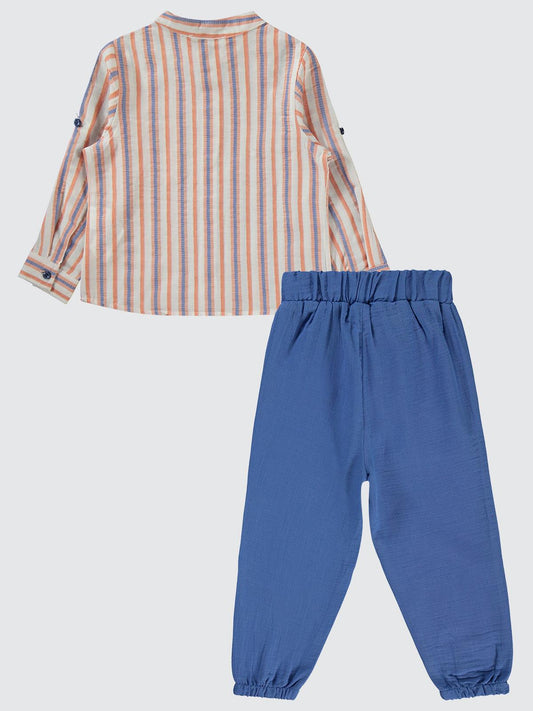 Civil boys çizgili gömlekli 2-5 yaş takım - turuncu