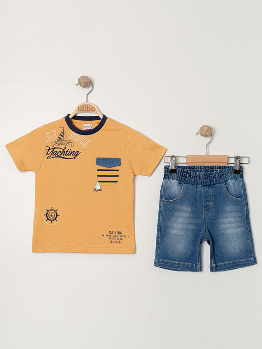 Bizizo yelken baskılı bisiklet yaka 2-5 yaş takım - turuncu