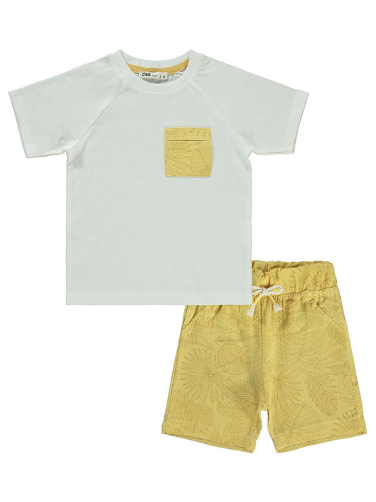 Civil boys yaprak baskılı 2-5 yaş takım - hardal
