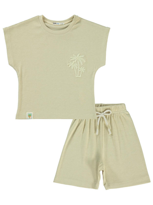 Civil boys yarasa kol palmiye nakışlı 2-5 yaş takım - bej
