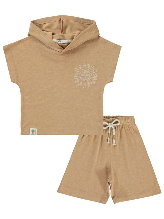 Civil boys yarasa kol kapşonlu 2-5 yaş takım - bej