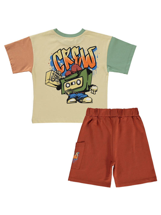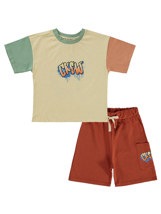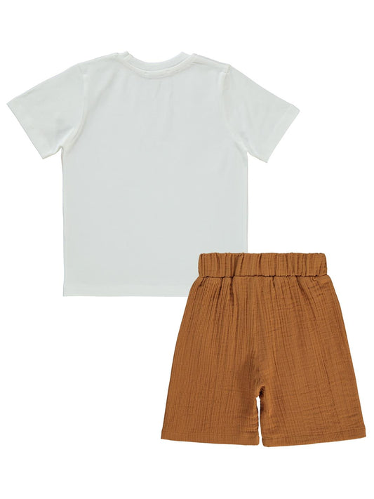 Civil boys yelken baskılı kaprili 2-5 yaş takım - ekru
