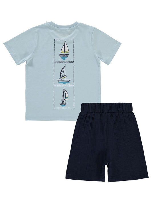 Civil boys yelken baskılı kaprili 2-5 yaş takım - mavi