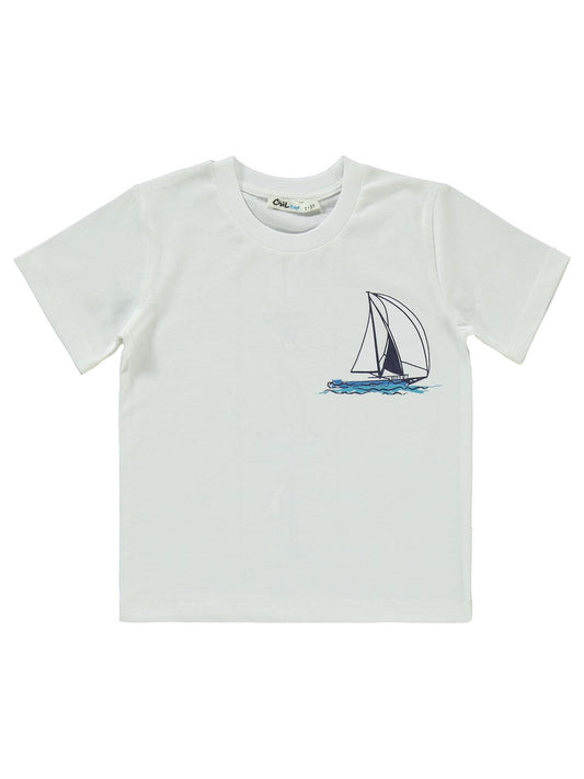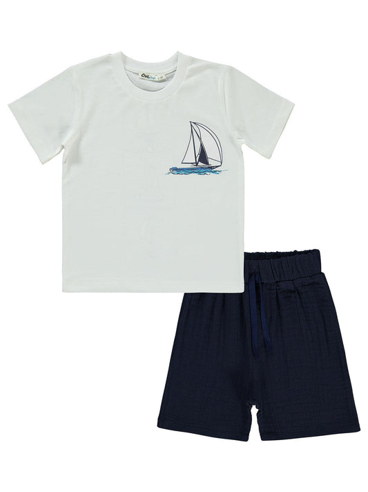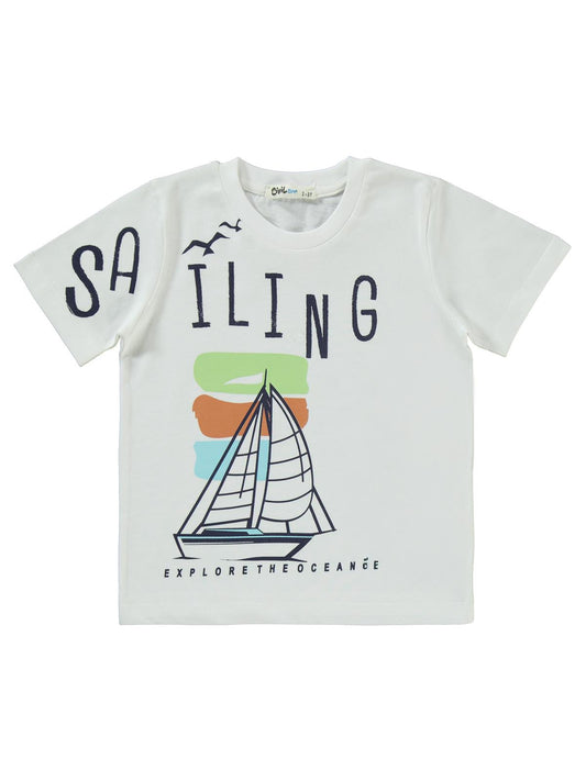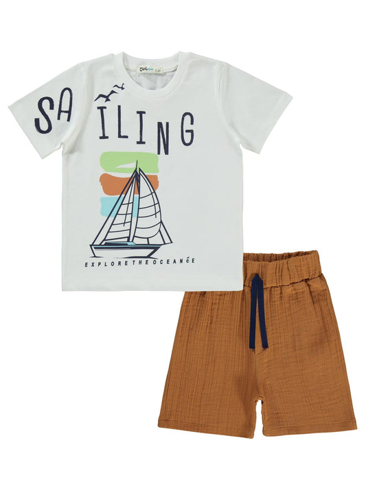 Civil boys saılıng baskılı kaprili 2-5 yaş takım - ekru