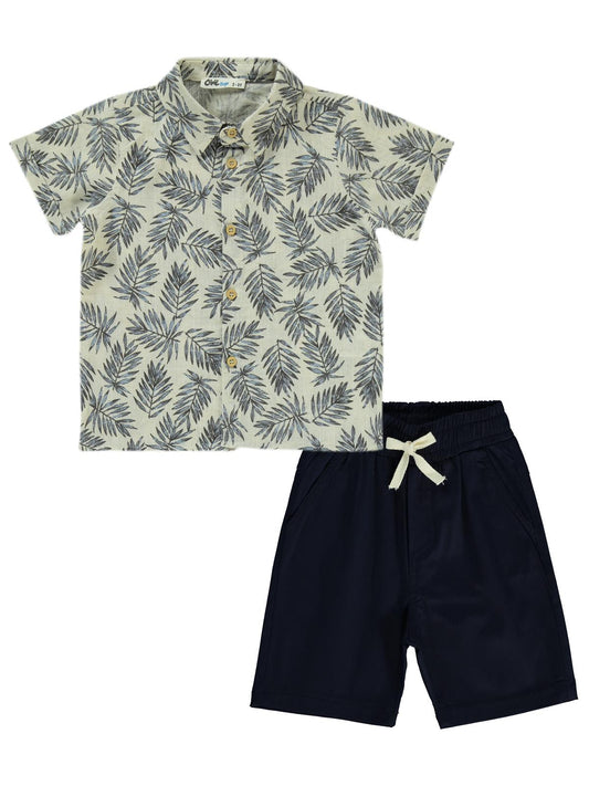 Civil boys yaprak baskılı kaprili 2-5 yaş takım - lacivert