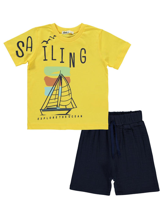 Civil boys saılıng baskılı kaprili 2-5 yaş takım - sarı