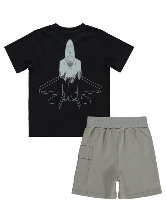 Civil boys kaan uçak baskılı 2-5 yaş takım - siyah