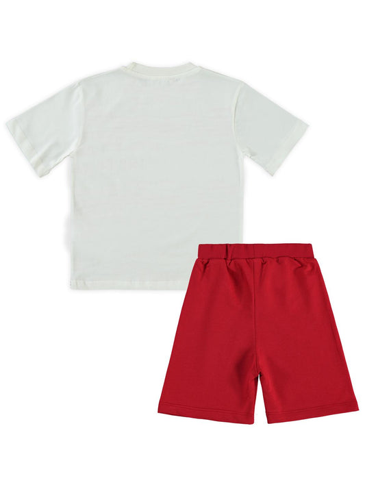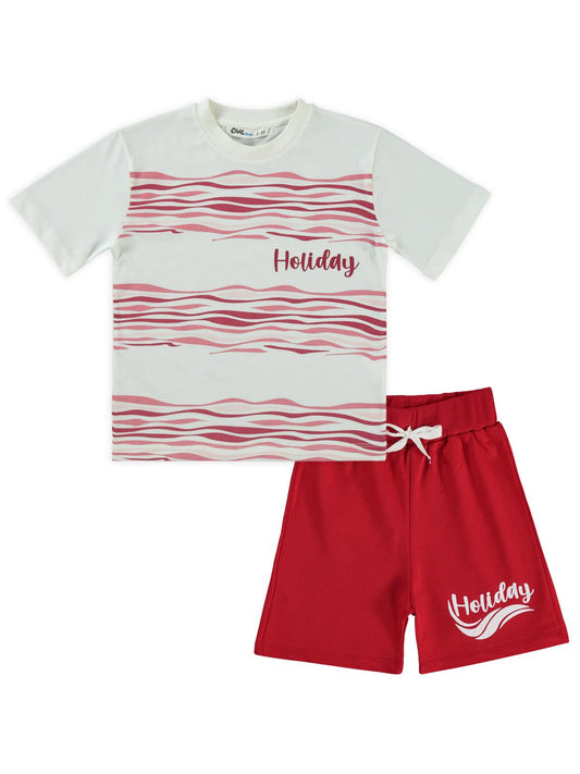 Civil boys holiday baskılı 2-5 yaş takım - kırmızı