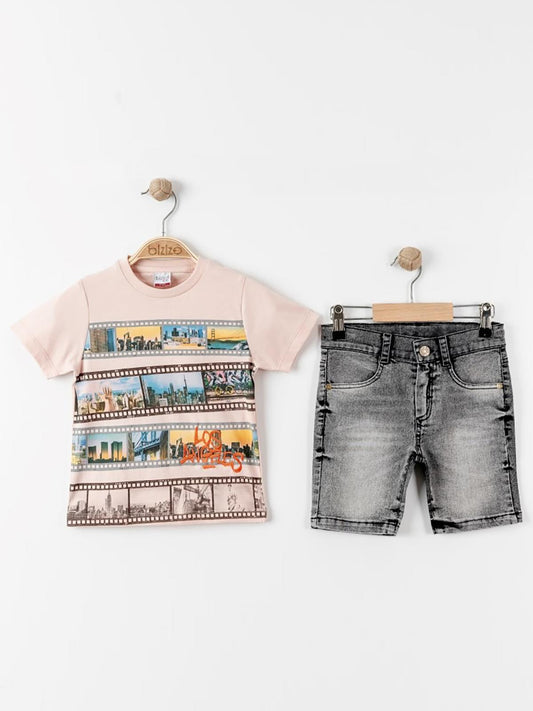 Civil boys los angeles baskılı 2-5 yaş takım - pudra
