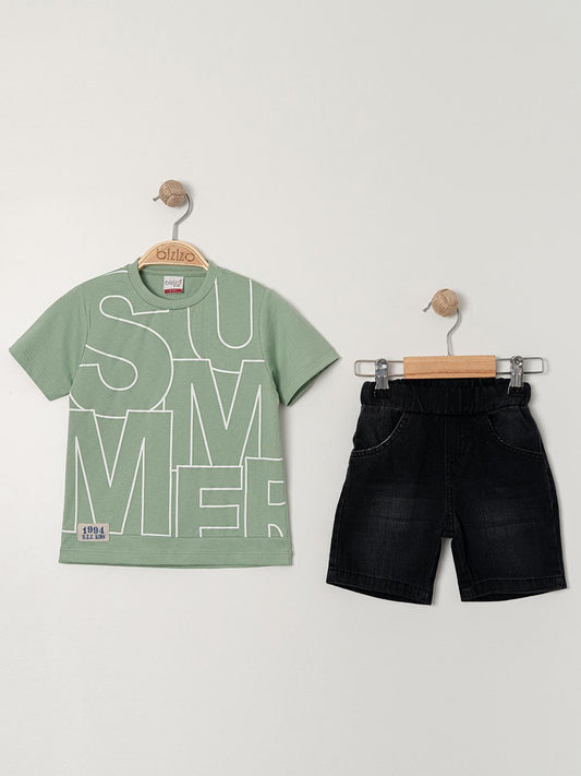 Bizizo summer baskılı bisiklet yaka 2-5 yaş takım - haki