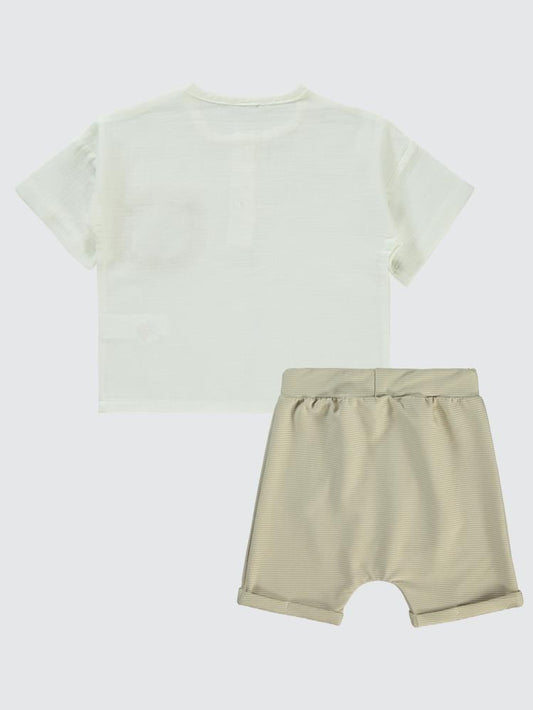 Civil boys cebi hayvan nakışlı şortlu 2-5 yaş takım - bej