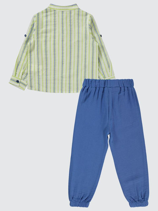 Civil boys çizgili gömlekli 2-5 yaş takım - yeşil