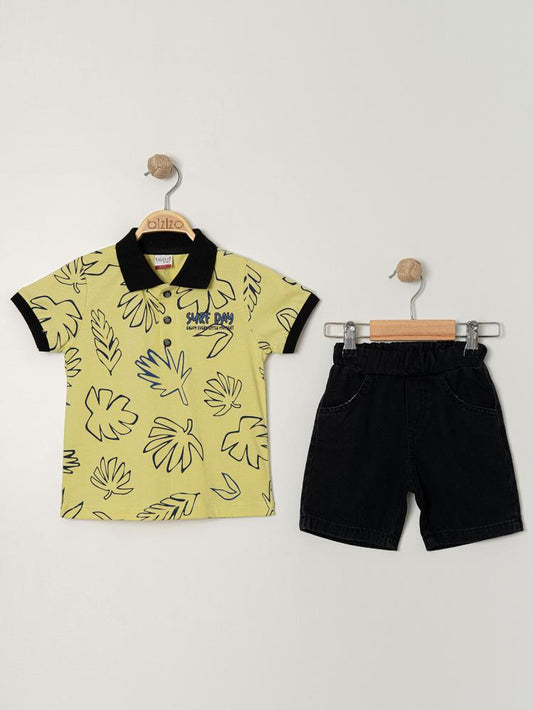 Bizizo yaprak baskılı polo yaka 2-5 yaş takım - sarı