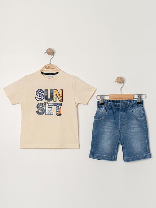 Bizizo summer baskılı bisiklet yaka 2-5 yaş takım - ekru