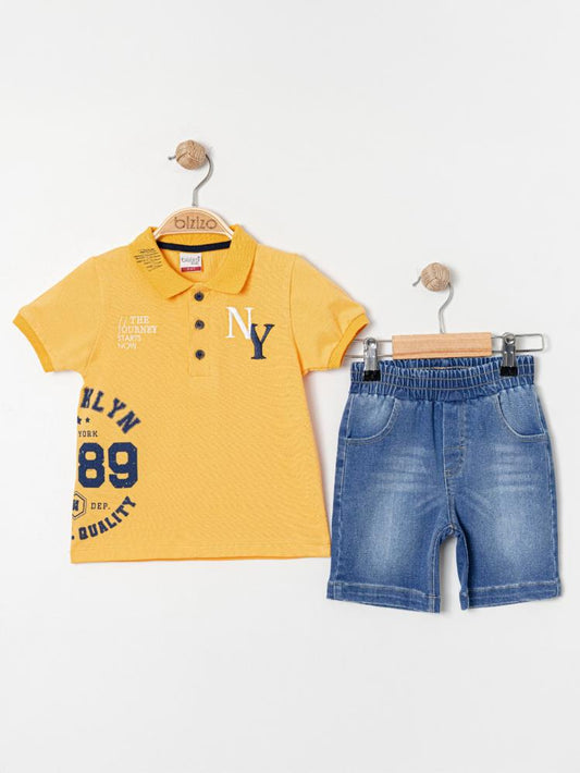 Bizizo ny nakışlı polo yaka 2-5 yaş takım - hardal