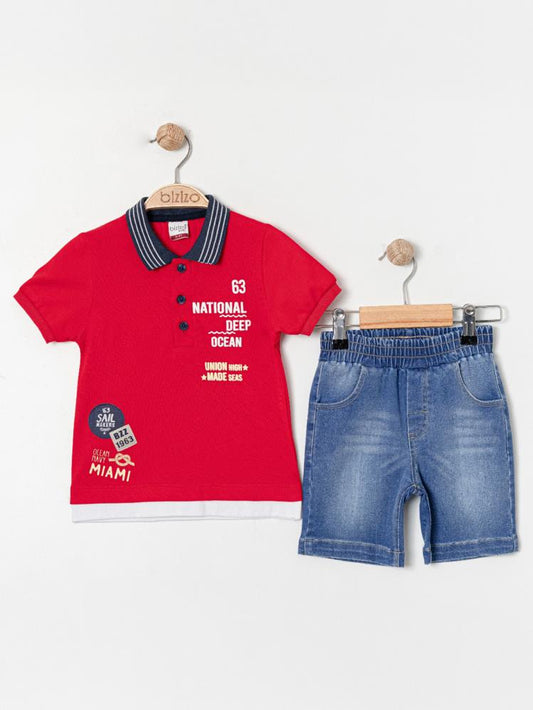 Bizio 63 natıonel baskılı polo yaka 2-5 yaş takım - kırmızı