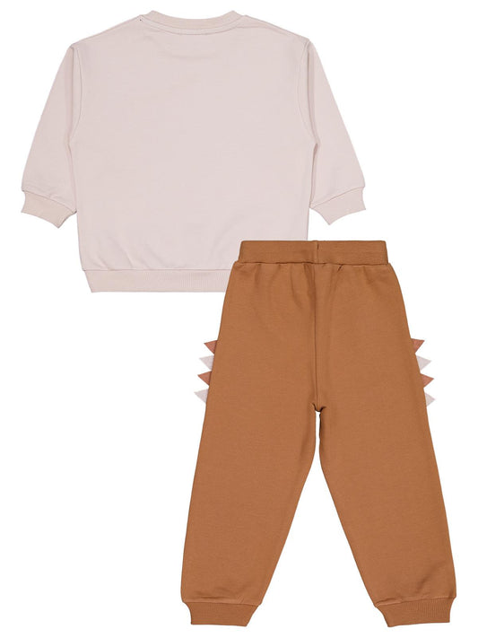 Civil boys dinozor baskılı 2-5 yaş eşofman takımı - bej