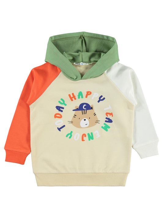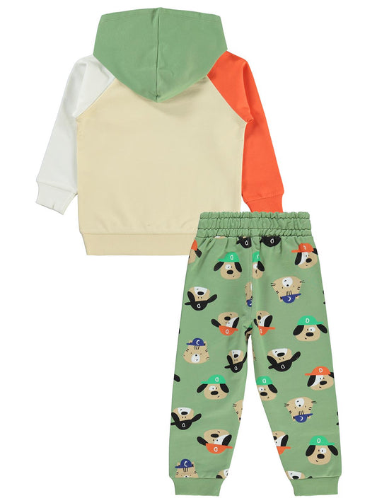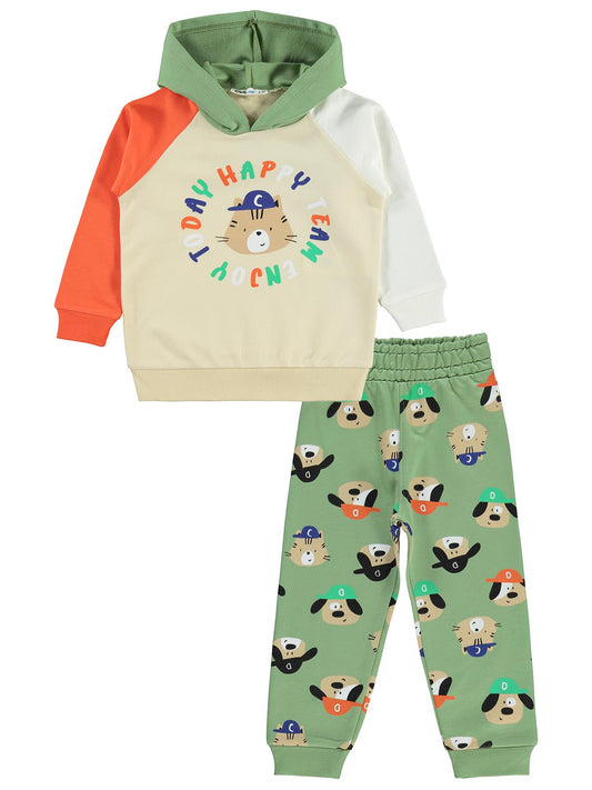 Civil boys kapşonlu şapkalı ayıcık baskılı 2-5 yaş eşofman takımı - haki