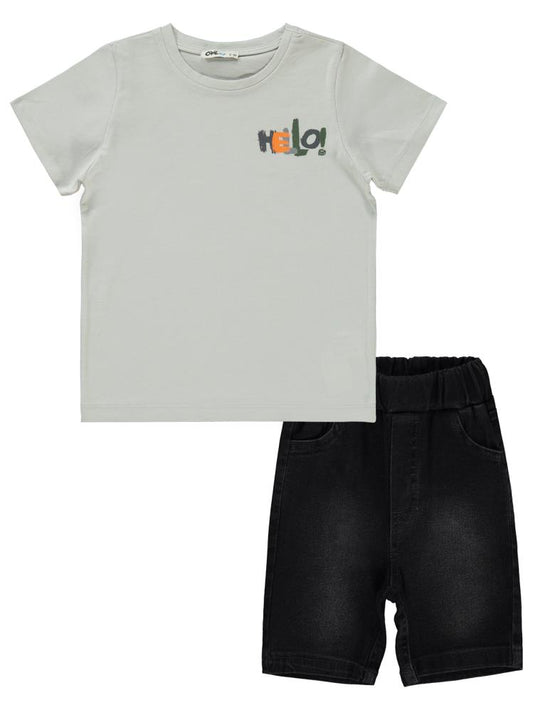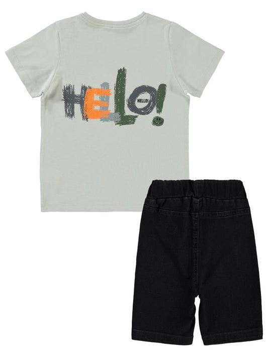 Civil boys hello baskılı 2-5 yaş takım - gri